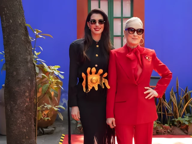 Set against the vibrant backdrop of La Casa Azul, the iconic home of Frida Kahlo in Mexico City, Hathaway stepped out in a Schiaparelli ensemble for The Devil Wears Prada 2 press tour. She pairing the ensemble with the structured leather bag that complemented the outfit.