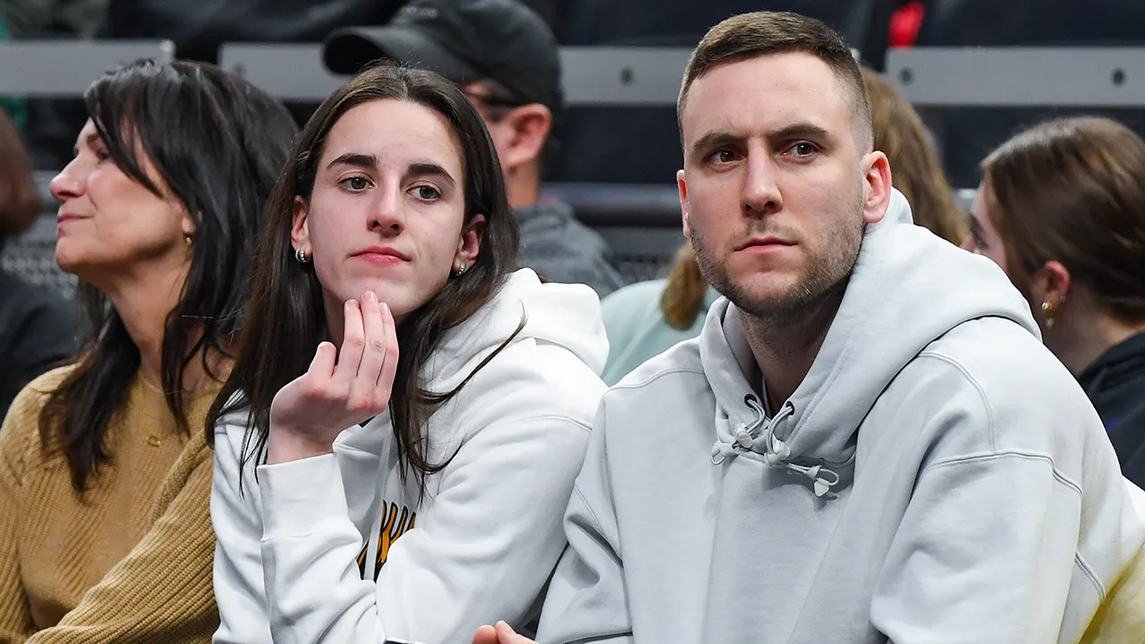 WNBA star Caitlin Clark and boyfriend Connor McCaffery attend a Big Ten Women’s Basketball Tournament second-round game between the Iowa Hawkeyes and Michigan State Spartans at Gainbridge Fieldhouse in Indianapolis, Ind., on March 6, 2025. (Aaron J. Thornton/Getty Images)