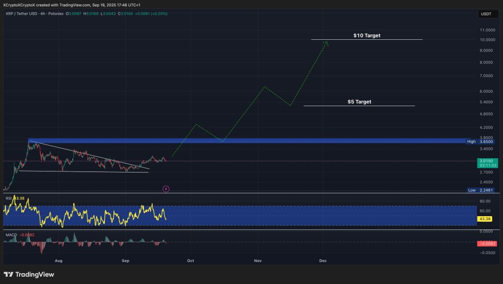 If approvals land and momentum holds, this XRP price prediction remains valid: $5 by October, $10 by December.