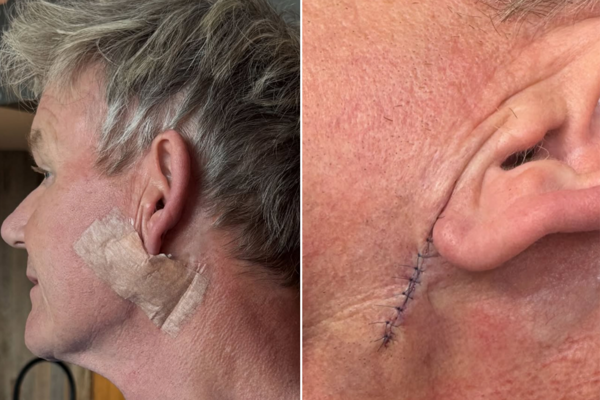 The 58-year-old TV chef shared pictures of a stitched-up area below his ear on Instagram on Saturday, telling his followers he was “grateful and so appreciative” of his medical team for their “fast reactive work”.