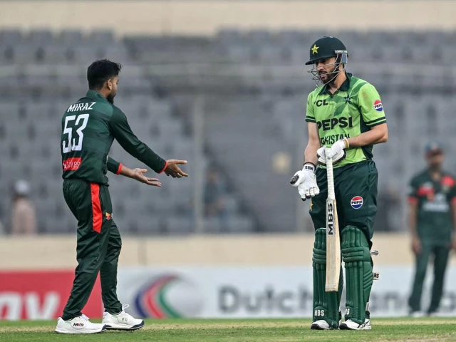 The incident occurred in the 39th over of Pakistan’s innings. After being run out, Agha threw his gloves and helmet to the ground in frustration when Bangladesh captain Mehidy Hasan Miraz came in his way while he was trying to ground his bat past the non-striker’s crease during a fourth-wicket partnership with Mohammad Rizwan.