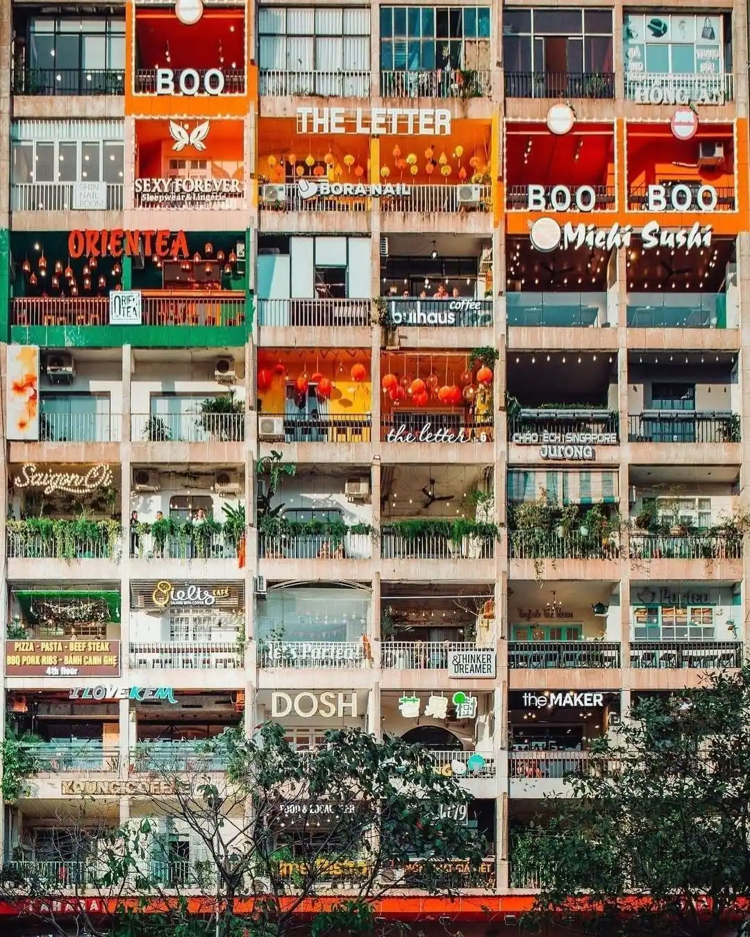 Located at 42 Nguyen Hue Walking Street in District 1, the building was originally constructed in the 1960s as a residential complex. Over time, it has been transformed into a vibrant vertical community filled with more than 50 independent cafés, boutiques, restaurants, and co-working spaces.