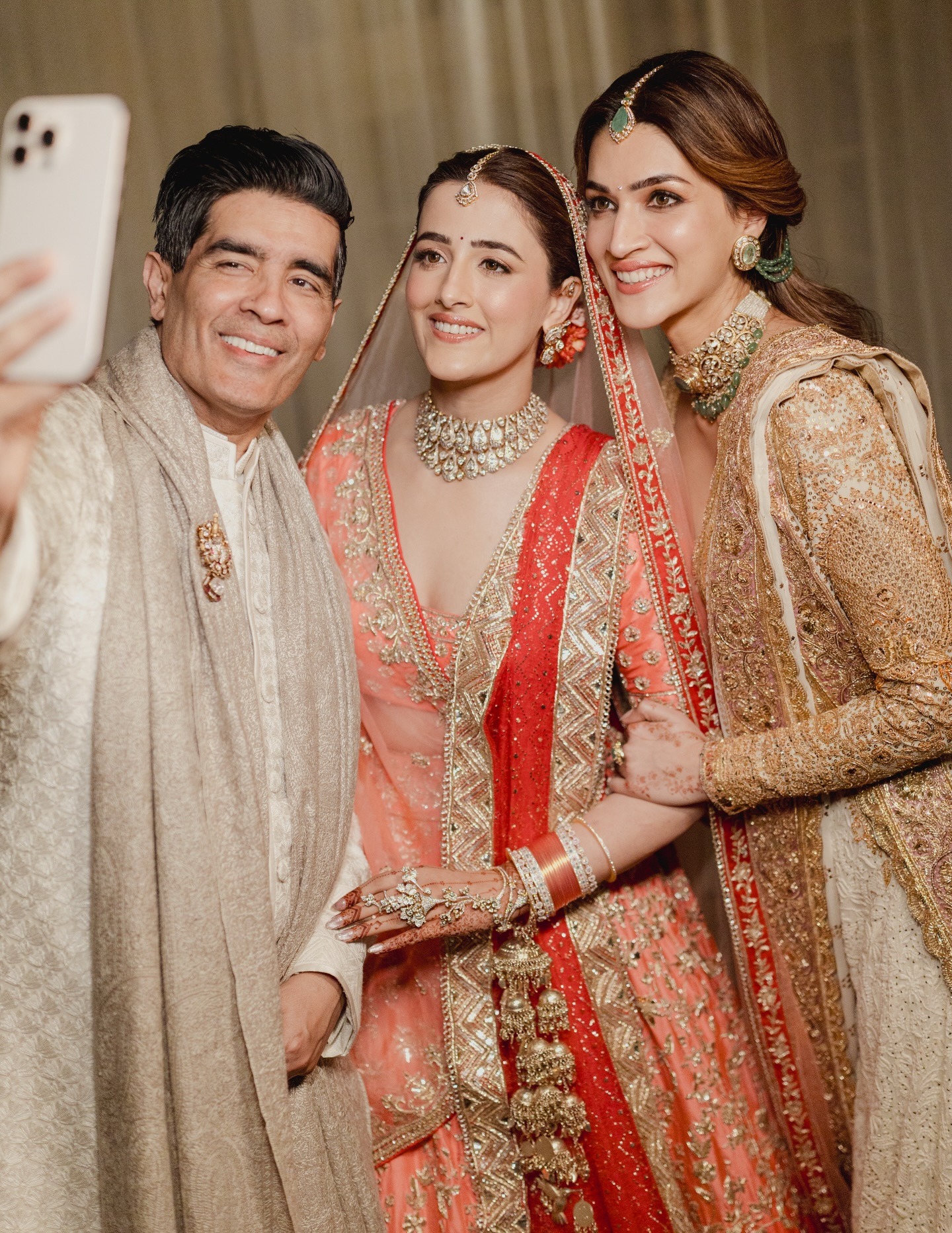 Kriti has celebrated the designer and his impeccable designs over the years. Kriti recently celebrated her sister, Nupur Sanon’s wedding, looking breathtaking in Manish Malhotra couture and also had the whole family wear the couturier’s creations.