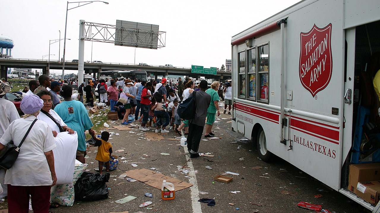 Volunteers with the Salvation Army provide food and aid to those impacted by the destruction from Hurricane Katrina in August 2005. (The Salvation Army)