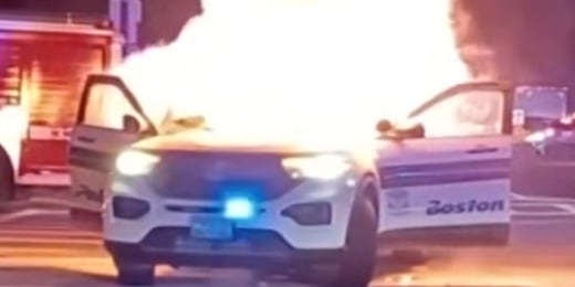 Crowd sets Boston police car on fire with fireworks