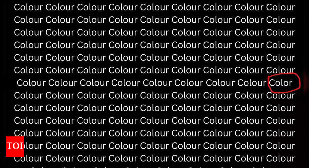 This visual puzzle challenges not just your eyesight but your focus and attention to detail. Your brain tends to gloss over repeated patterns, quickly recognising them as familiar and filling in the blanks. That’s what makes this illusion so clever: the rogue word blends seamlessly with its surroundings, making it surprisingly difficult to locate.Such puzzles are a great way to sharpen your observation skills and exercise your brain’s pattern recognition capabilities. The longer you look, the more your mind begins to second-guess itself. Is that a missing ‘u’? Was that just a trick of the eyes?So here’s your challenge: You have to find the word “Color” in this sea of “Colour” in 8 seconds ? It’s there, perfectly camouflaged, and waiting to be found. Don’t be surprised if it takes longer than expected; this is more than just a spelling test; it’s a battle between your perception and your brain’s love for patterns.Be Ready…It’s time to begin the game!So your time starts now!..Take a closer look at the picture and try to find out “color”, written in American English...Fast; the time is about to overSo now, here is the end of the given time limit of 8 seconds.Did you find it?If you were able to find it in 8 seconds, then you have sharp observing skills, if not then you can find the answer below and practice more and more optical illusions as they are all about practice.Answer: