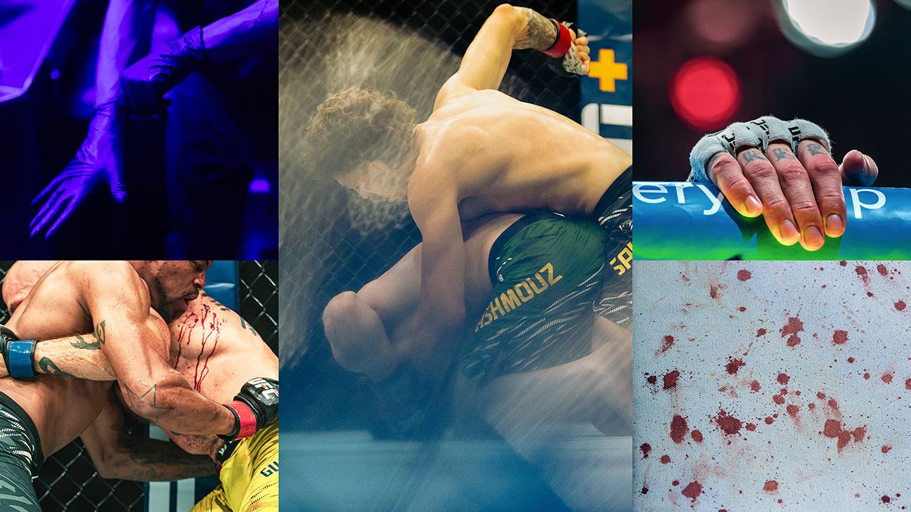 Baez has done this many, many times over his 21 years with the company. So he stands off to the side, nonplussed, scrolling on his phone. He lifts his head and looks at the Octagon. “This is my ultimate baby,” he says. “But I can’t stop thinking about that BJJ stage. I don’t like what I’m seeing. Not even a little bit.”