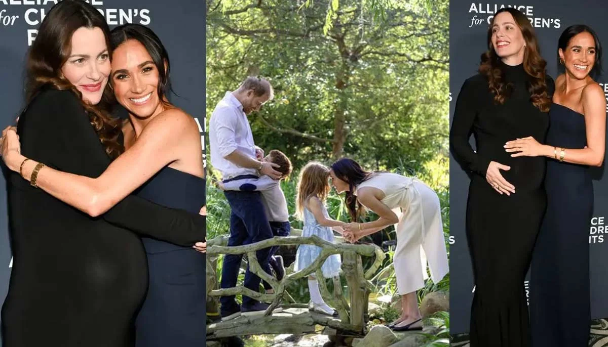 The Duchess of Sussex flied into passion as she embraced her pregnant friend Kelly McKee Zafjen at an event for the Alliance for Children’s Rights in Beverly Hills on Thursday night.
