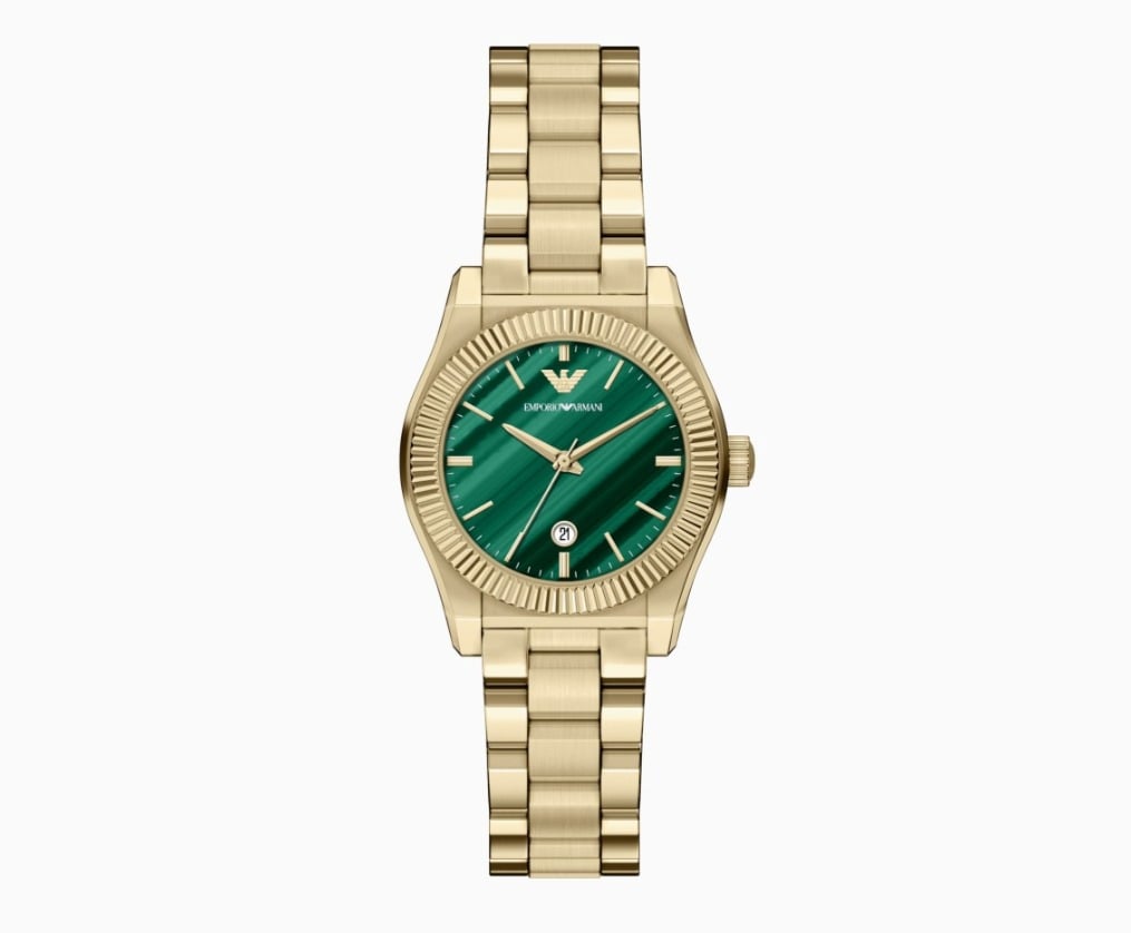 Emporio Armani launches a refined spring addition, including the AR11761. Featuring a rich green dial paired with a gold-tone stainless steel bracelet, the design balances modern expression with timeless appeal. It is a polished update that fits seamlessly into the rhythm of a new season.