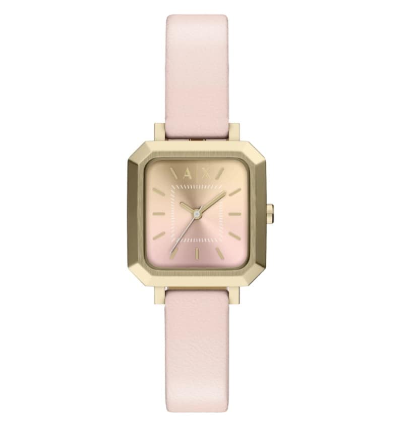 Armani Exchange launches a new spring lineup defined by sleek silhouettes and soft metallic finishes. The AX5737 introduces a pink sunray dial within a rectangular case for understated elegance, while the AX5619 delivers a warm gold tone update that feels versatile and easy. Together, they bring a refined yet relaxed energy to the season.