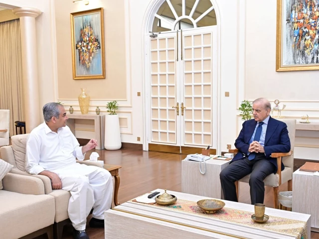 Interior Minister Moshin Naqvi meeting Prime Minister Shehbaz Sharif. Photo: X