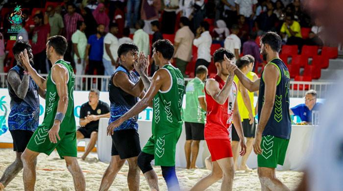 Playing at the Khedhufushi City Beach Handball Court, Pakistan dominated both sets to register a commanding victory. Pakistan clinched the first set 26-9 before stepping up the pace in the second, cruising to a 34-12 finish.