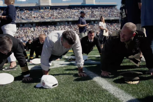 Hegseth helps set world record at Navy football game for most people doing push-ups at the same time