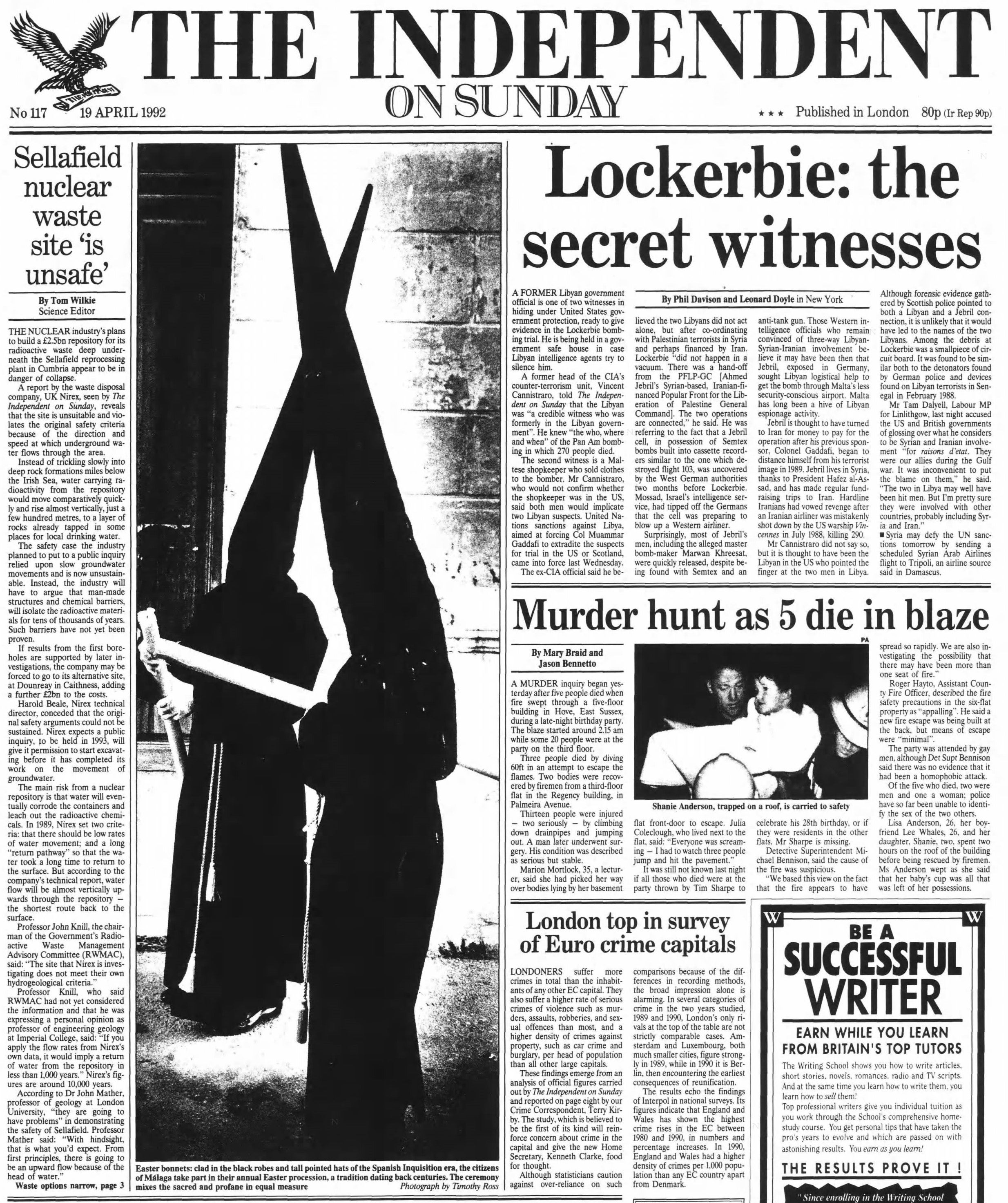 19 April 1992 – Secret Lockerbie witnesses placed in hiding