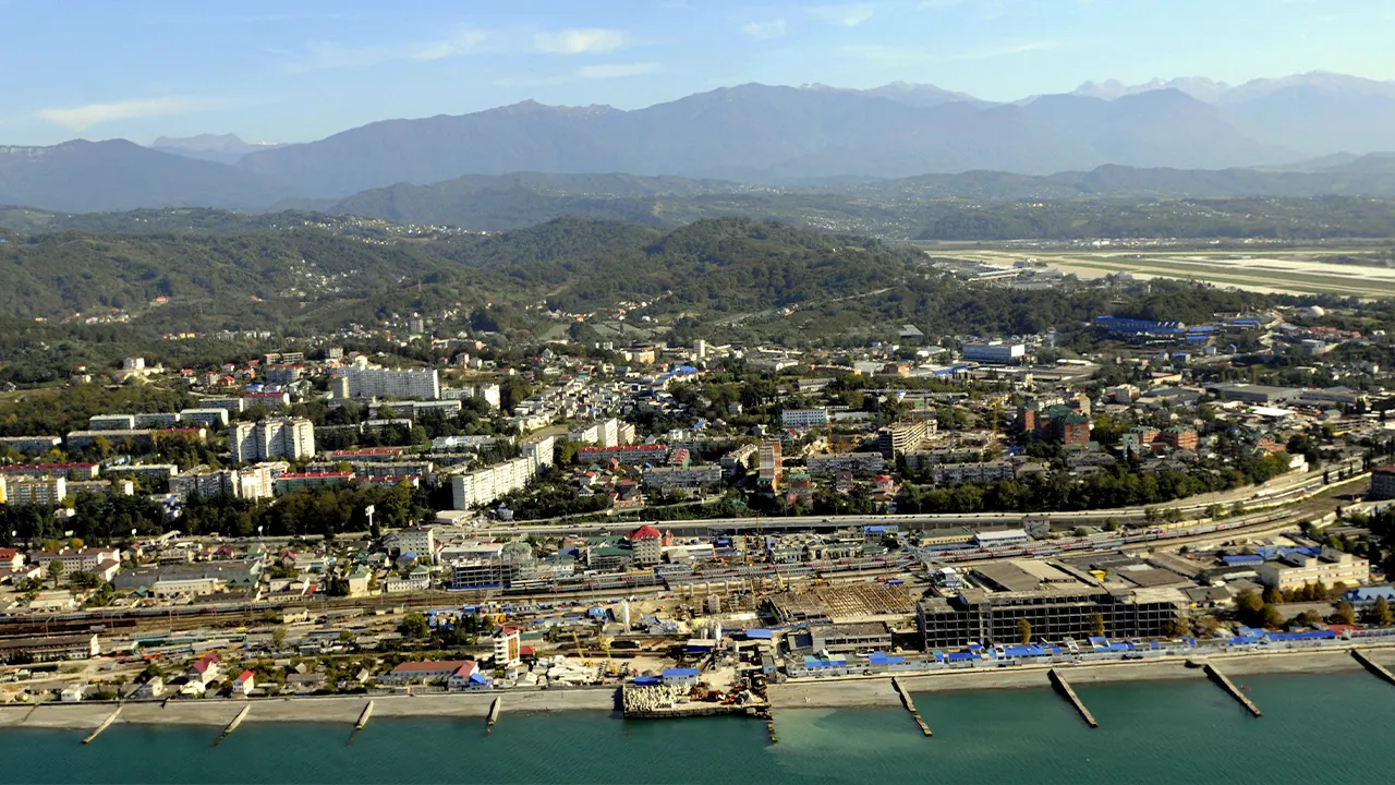 A picture taken from a helicopter shows a view of the Black Sea coast near Sochi, Russia, on October 26, 2010. (MIKHAIL MORDASOV / AFP via Getty Images)